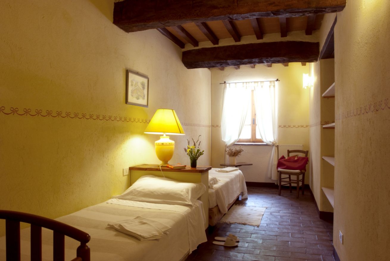 L’appartamento i “Tulipani” è un quadrilocale di 91 metri quadri con ingresso indipendente al piano terra. E' dotato di due stanze da letto (una matrimoniale e una doppia), un ampio salotto con camino e divano letto matrimoniale e TV via satellite. La cucina è abitabile ed è dotata di quanto necessario per preparare i pasti (stoviglie, pentole, ecc.). Il bagno è dotato di doccia e relativi servizi. E’ l’unico appartamento con tutti i confort per le persone disabili. La vista da questo appartamento è sul suggestivo laghetto collinare dell'agriturismo. Il riscaldamento è centralizzato con regolazione della temperatura direttamente dall'appartamento stesso. Questa struttura, per la sua costituzione, ha il pregio di essere molto fresco di estate e di mantenere un piacevole caldo d'inverno. La lavatrice è utilizzabile, in comune con gli altri appartamenti, e si trova in un apposito locale del casolare.